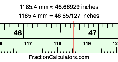 Here is how to convert 1185.4 mm to inches. We will give you the fractional answer, the decimal answer, and illustrate the answer on our tape measure.