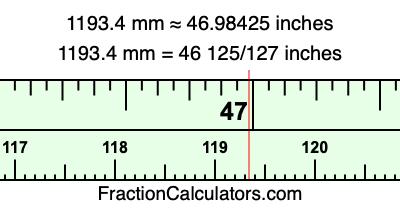 Here is how to convert 1193.4 mm to inches. We will give you the fractional answer, the decimal answer, and illustrate the answer on our tape measure.