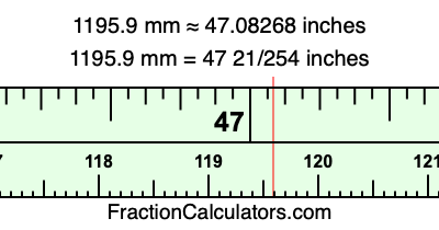 Here is how to convert 1195.9 mm to inches. We will give you the fractional answer, the decimal answer, and illustrate the answer on our tape measure.