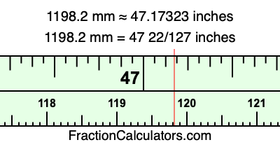 One millimeter is equal to 5/127 inches, and 1198.2 as a fraction is 5991/5. Therefore, to get the fractional answer to 1198.2 mm in inches, we multiply 5991/5 by 5/127 and simplify if necessary.