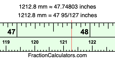 Here is how to convert 1212.8 mm to inches. We will give you the fractional answer, the decimal answer, and illustrate the answer on our tape measure.