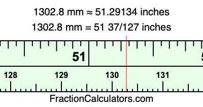 Here is how to convert 1302.8 mm to inches. We will give you the fractional answer, the decimal answer, and illustrate the answer on our tape measure.
