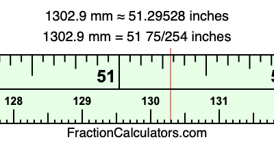 Here is how to convert 1302.9 mm to inches. We will give you the fractional answer, the decimal answer, and illustrate the answer on our tape measure.