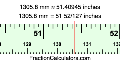 Here is how to convert 1305.8 mm to inches. We will give you the fractional answer, the decimal answer, and illustrate the answer on our tape measure.