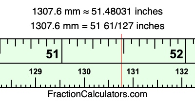 One millimeter is equal to 5/127 inches, and 1307.6 as a fraction is 6538/5. Therefore, to get the fractional answer to 1307.6 mm in inches, we multiply 6538/5 by 5/127 and simplify if necessary.