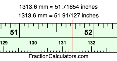 Here is how to convert 1313.6 mm to inches. We will give you the fractional answer, the decimal answer, and illustrate the answer on our tape measure.