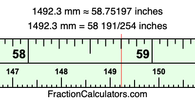 Here is how to convert 1492.3 mm to inches. We will give you the fractional answer, the decimal answer, and illustrate the answer on our tape measure.