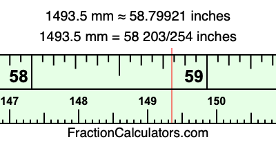 Here is how to convert 1493.5 mm to inches. We will give you the fractional answer, the decimal answer, and illustrate the answer on our tape measure.