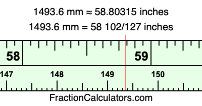 Here is how to convert 1493.6 mm to inches. We will give you the fractional answer, the decimal answer, and illustrate the answer on our tape measure.