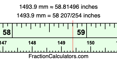 Here is how to convert 1493.9 mm to inches. We will give you the fractional answer, the decimal answer, and illustrate the answer on our tape measure.