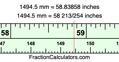 Here is how to convert 1494.5 mm to inches. We will give you the fractional answer, the decimal answer, and illustrate the answer on our tape measure.