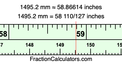 Here is how to convert 1495.2 mm to inches. We will give you the fractional answer, the decimal answer, and illustrate the answer on our tape measure.