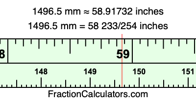 Here is how to convert 1496.5 mm to inches. We will give you the fractional answer, the decimal answer, and illustrate the answer on our tape measure.