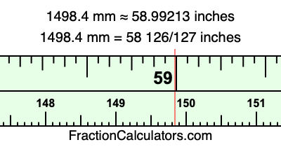 Here is how to convert 1498.4 mm to inches. We will give you the fractional answer, the decimal answer, and illustrate the answer on our tape measure.