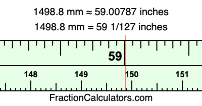 Here is how to convert 1498.8 mm to inches. We will give you the fractional answer, the decimal answer, and illustrate the answer on our tape measure.