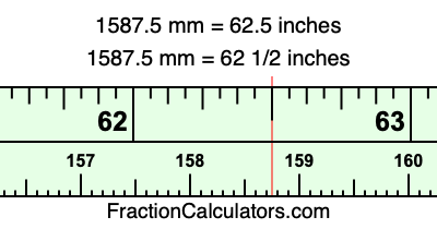 One millimeter is equal to 5/127 inches, and 1587.5 as a fraction is 3175/2. Therefore, to get the fractional answer to 1587.5 mm in inches, we multiply 3175/2 by 5/127 and simplify if necessary.