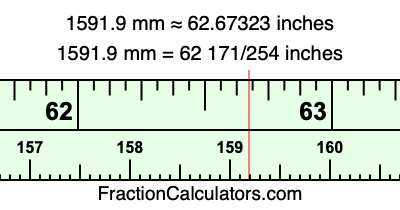 As promised above, we also have the answer to 1591.9 mm in inches in decimal form. Although the fractional answer above is exact, the decimal answer may be rounded if necessary: