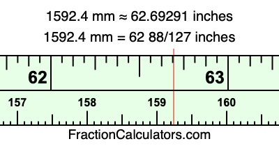Here is how to convert 1592.4 mm to inches. We will give you the fractional answer, the decimal answer, and illustrate the answer on our tape measure.