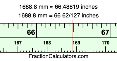 Here is how to convert 1688.8 mm to inches. We will give you the fractional answer, the decimal answer, and illustrate the answer on our tape measure.