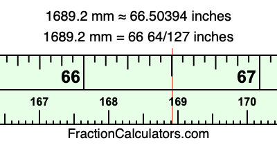 Here is how to convert 1689.2 mm to inches. We will give you the fractional answer, the decimal answer, and illustrate the answer on our tape measure.