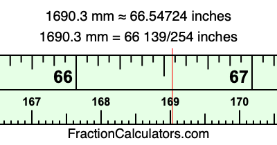 As promised above, we also have the answer to 1690.3 mm in inches in decimal form. Although the fractional answer above is exact, the decimal answer may be rounded if necessary:
