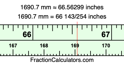 Here is how to convert 1690.7 mm to inches. We will give you the fractional answer, the decimal answer, and illustrate the answer on our tape measure.