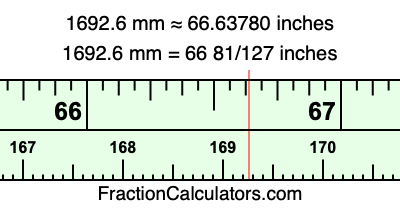 Here is how to convert 1692.6 mm to inches. We will give you the fractional answer, the decimal answer, and illustrate the answer on our tape measure.
