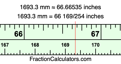 Here is how to convert 1693.3 mm to inches. We will give you the fractional answer, the decimal answer, and illustrate the answer on our tape measure.