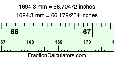 Here is how to convert 1694.3 mm to inches. We will give you the fractional answer, the decimal answer, and illustrate the answer on our tape measure.