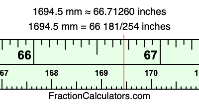 Here is how to convert 1694.5 mm to inches. We will give you the fractional answer, the decimal answer, and illustrate the answer on our tape measure.