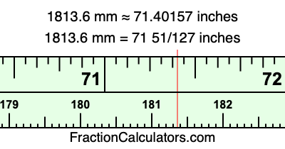 Here is how to convert 1813.6 mm to inches. We will give you the fractional answer, the decimal answer, and illustrate the answer on our tape measure.