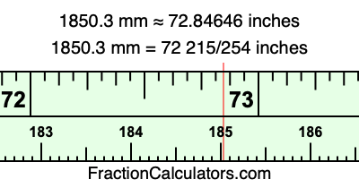 Here is how to convert 1850.3 mm to inches. We will give you the fractional answer, the decimal answer, and illustrate the answer on our tape measure.