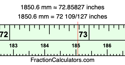 Here is how to convert 1850.6 mm to inches. We will give you the fractional answer, the decimal answer, and illustrate the answer on our tape measure.