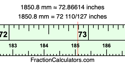 Here is how to convert 1850.8 mm to inches. We will give you the fractional answer, the decimal answer, and illustrate the answer on our tape measure.