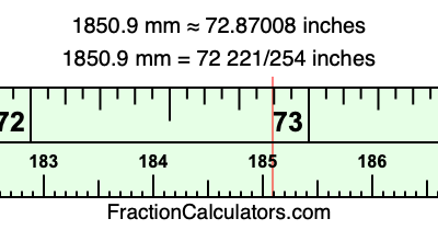 Here is how to convert 1850.9 mm to inches. We will give you the fractional answer, the decimal answer, and illustrate the answer on our tape measure.