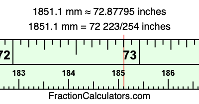 One millimeter is equal to 5/127 inches, and 1851.1 as a fraction is 18511/10. Therefore, to get the fractional answer to 1851.1 mm in inches, we multiply 18511/10 by 5/127 and simplify if necessary.