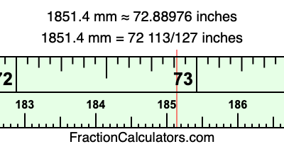 Here is how to convert 1851.4 mm to inches. We will give you the fractional answer, the decimal answer, and illustrate the answer on our tape measure.