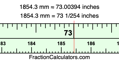 Here is how to convert 1854.3 mm to inches. We will give you the fractional answer, the decimal answer, and illustrate the answer on our tape measure.