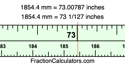One millimeter is equal to 5/127 inches, and 1854.4 as a fraction is 9272/5. Therefore, to get the fractional answer to 1854.4 mm in inches, we multiply 9272/5 by 5/127 and simplify if necessary.