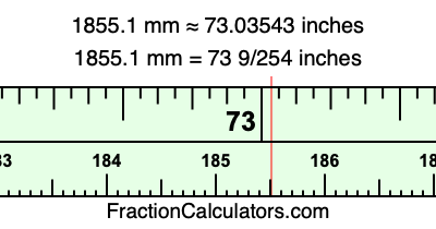 Here is how to convert 1855.1 mm to inches. We will give you the fractional answer, the decimal answer, and illustrate the answer on our tape measure.