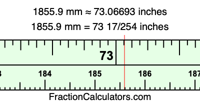 Here is how to convert 1855.9 mm to inches. We will give you the fractional answer, the decimal answer, and illustrate the answer on our tape measure.