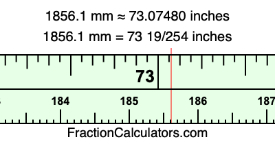 Here is how to convert 1856.1 mm to inches. We will give you the fractional answer, the decimal answer, and illustrate the answer on our tape measure.