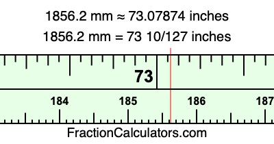 Here is how to convert 1856.2 mm to inches. We will give you the fractional answer, the decimal answer, and illustrate the answer on our tape measure.