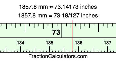 As promised above, we also have the answer to 1857.8 mm in inches in decimal form. Although the fractional answer above is exact, the decimal answer may be rounded if necessary: