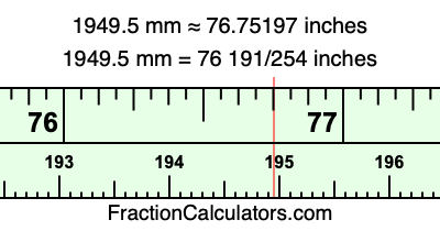 Here is how to convert 1949.5 mm to inches. We will give you the fractional answer, the decimal answer, and illustrate the answer on our tape measure.