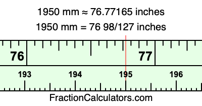 Here is how to convert 1950 mm to inches. We will give you the fractional answer, the decimal answer, and illustrate the answer on our tape measure.