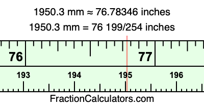 Here is how to convert 1950.3 mm to inches. We will give you the fractional answer, the decimal answer, and illustrate the answer on our tape measure.