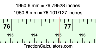 Here is how to convert 1950.6 mm to inches. We will give you the fractional answer, the decimal answer, and illustrate the answer on our tape measure.