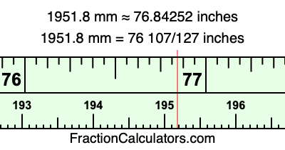 Here is how to convert 1951.8 mm to inches. We will give you the fractional answer, the decimal answer, and illustrate the answer on our tape measure.