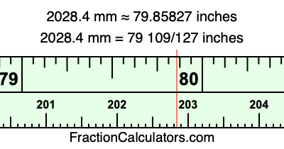 Here is how to convert 2028.4 mm to inches. We will give you the fractional answer, the decimal answer, and illustrate the answer on our tape measure.